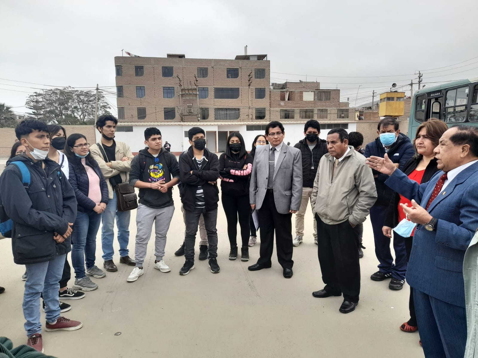 Visita al local de Oquendo - UNFV a cargo del Vicerrector Académico Dr. Américo Francisco Leyva Rojas, Autoridades de las Facultades de Ciencias Económicas, Ciencias Contables, Educación (EPEF) y Estudiantes Miembros del Concejo Universitario. Fuente: Escuela Profesional de Educación Física - Facultad de Educación. |