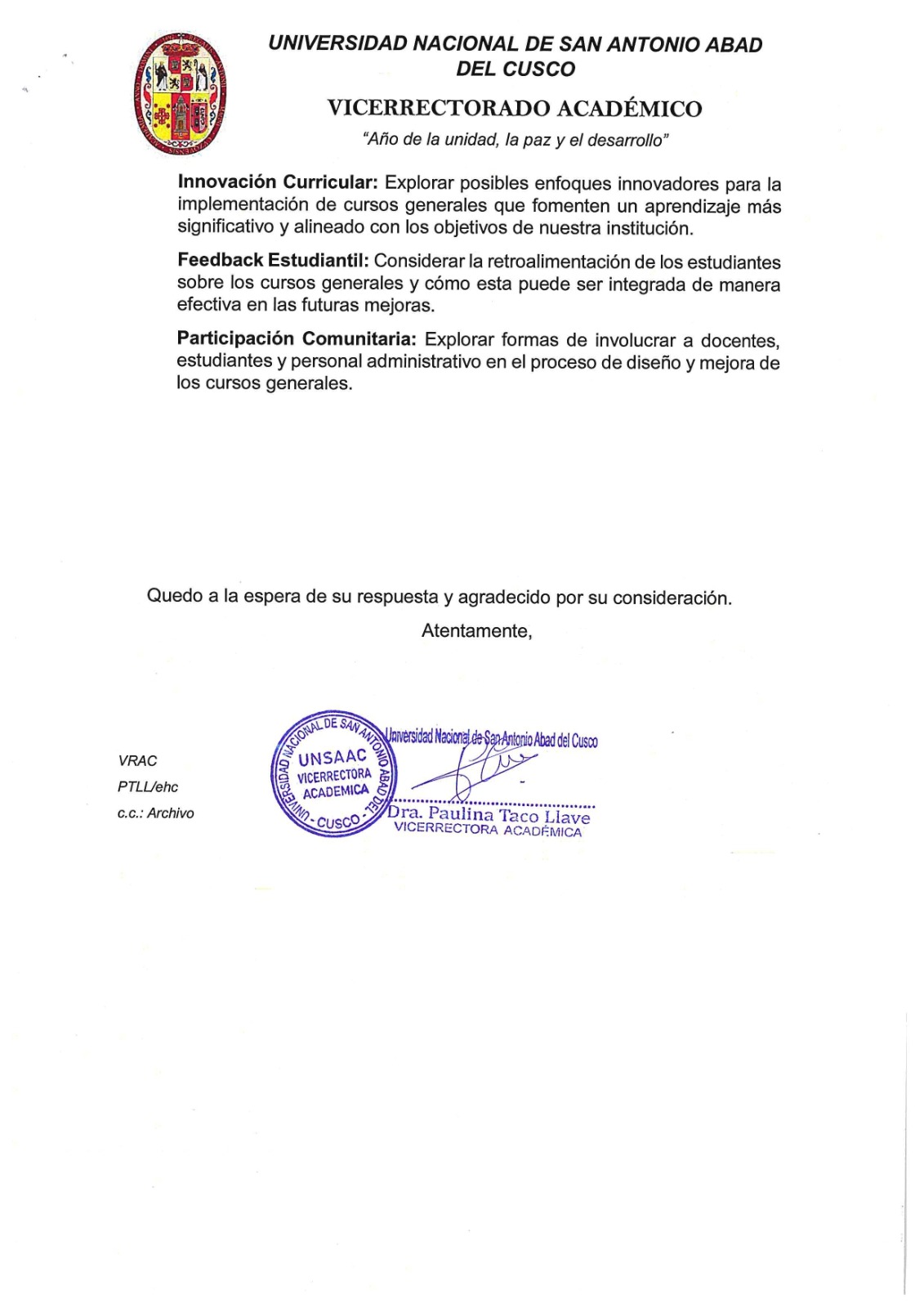 Oficina de Evaluación y Desarrollo Docente – Oficina Central de Asuntos Académicos - VRAC. |