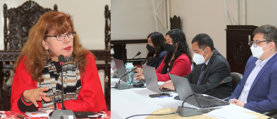 En la segunda reunión, además de la rectora, el vicerrector académico, los decanos, el secretario general, el jefe de la OCRAC, participaron la directora de Trabajo Social y la secretaria académica de la FH, magíster Beatriz Caballero Montero.