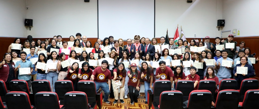 El referido acto lo presidió la doctora Cristina Asunción Alzamora Rivero, rectora de nuestra universidad; acompañada por el doctor Pedro Manuel Amaya Pingo, vicerrector de investigación; el doctor Carlos Heráclides Pajuelo Camones, jefe de la OCRNI; y la doctora Gloria Esperanza Cruz Gonzales, decana de la Facultad de Tecnología Médica.