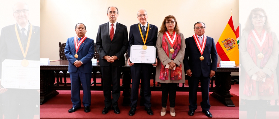 La doctora Cristina Asunción Alzamora Rivero, rectora de nuestra universidad, impuso la medalla, entregó el diploma, colocó el distintivo y otorgó un presente recordatorio al doctor Muñiz Fernández, condecorándolo con la más alta distinción académica.
