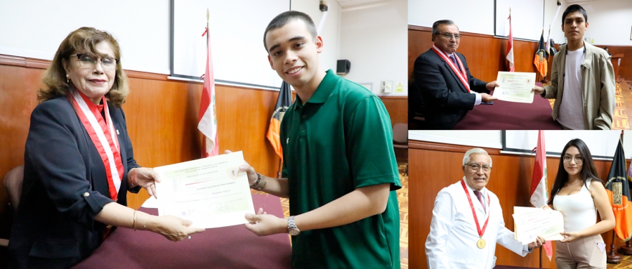 Seguidamente, se realizó la premiación a los ingresantes en los primeros puestos a la FO, Alejandro Salvador Palomino Matheus, quien obtuvo el segundo puesto; Mesías Alejandro Rojas Solís y Milagros Yadira Lozano Morillo, en el tercer lugar.