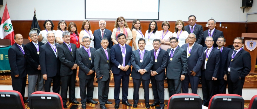 A continuación, se realizó la imposición de las medallas a los integrantes de la promoción 1980-II asistentes al acto, como recuerdo a su paso por las aulas villarrealinas, a cargo de la rectora de nuestra universidad y del decano de la FO.