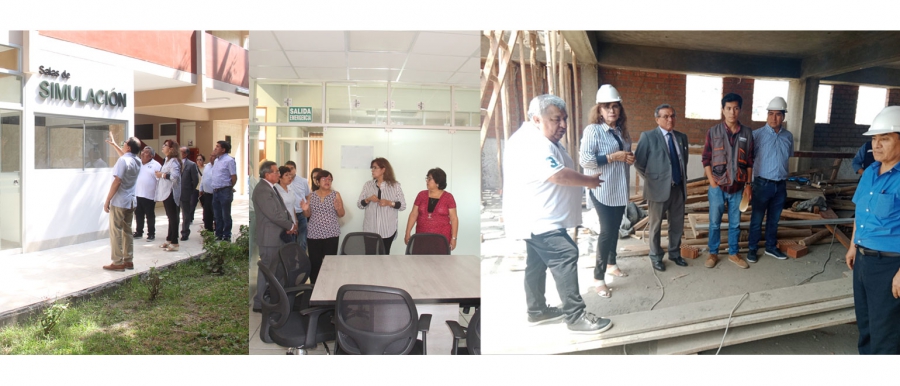 En la Facultad de Medicina “Hipólito Unanue” (FMHU) recorrieron principalmente los espacios que se vienen acondicionado para las salas de simulación, trabajo que se encuentra avanzados en un 80% aproximadamente y que permitirán mejorar los indicadores para alcanzar el licenciamiento del programa académico de Medicina.
