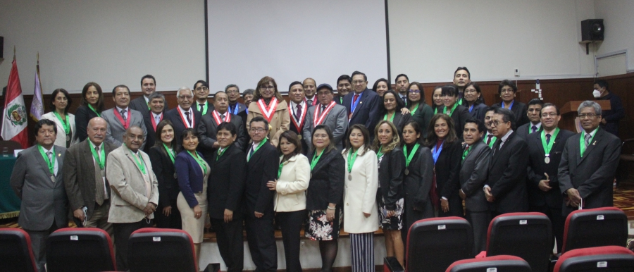 “Es una ceremonia llena de emociones, que trae a mi mente gratos recuerdos. Es muy significativo para mí ver a nuestros colegas docentes lucir con orgullo la medalla que los reconoce en sus nuevas categorías ya sea como principal o asociado y como auxiliares a los profesores que fueron nombrados este año”, manifestó nuestra rectora, doctora Cristina Asunción Alzamora Rivero, durante la ceremonia de imposición de medallas a los docentes de la Facultad de Odontología (FO).